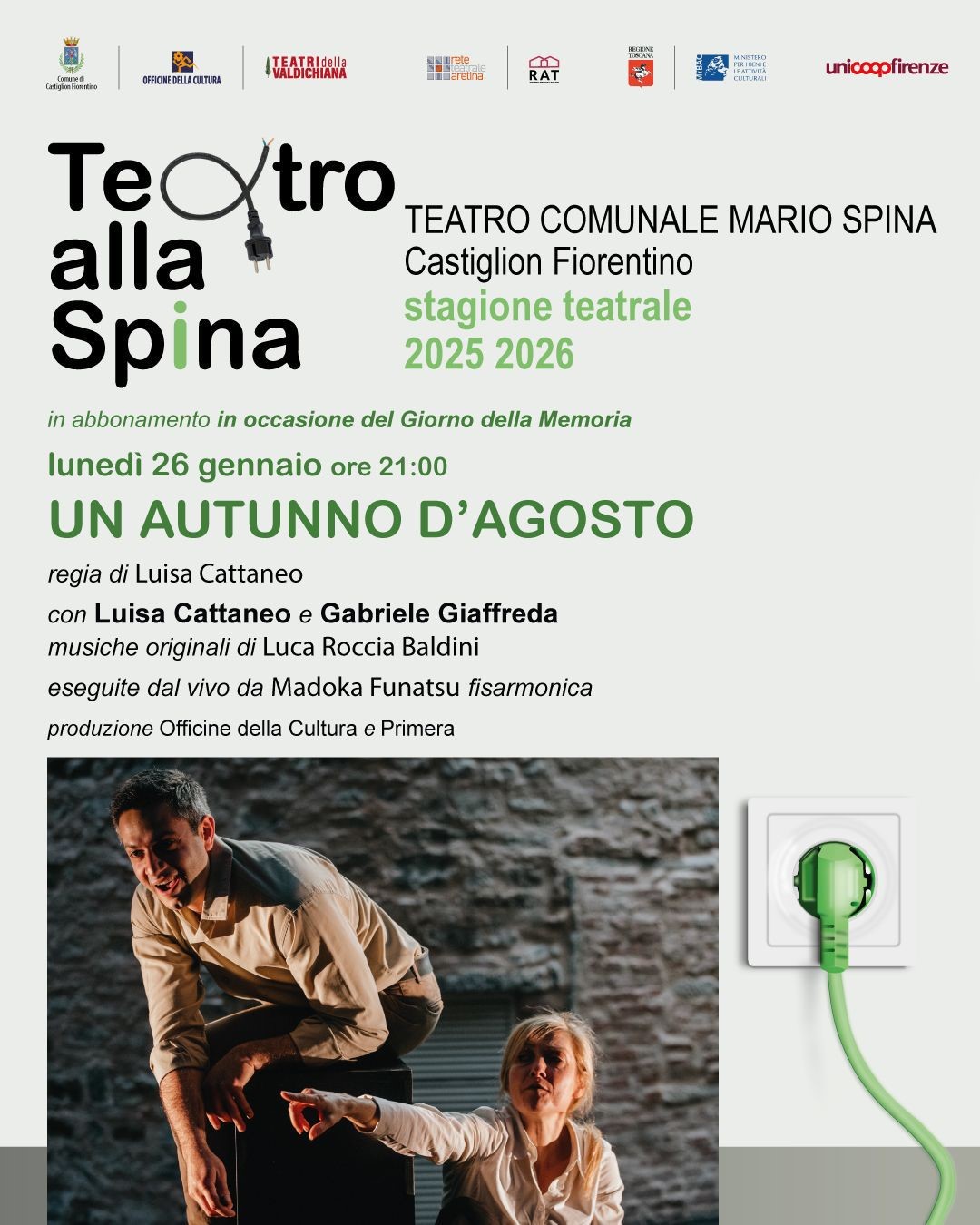 La stagione del Teatro Comunale Mario Spina di Castiglion Fiorentino è a cura di Comune di Castiglion Fiorentino e Officine della Cultura con il contributo di Unicoop Firenze. Ulteriori informazioni: www.officinedellacultura.org.