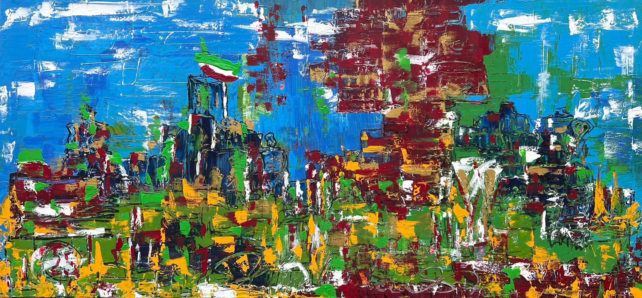 “Mia moglie, Claudia Mancini, ed io soggiorniamo più volte l’anno in questo luogo per noi molto speciale. Con il tempo, Castiglion Fiorentino è diventato uno spazio in cui ci sentiamo accolti, dove quiete, storia e vitalità si incontrano in modo autentico. Da questo legame profondo è nato il dipinto” – spiega Steffen che aggiunge – “ci sono voluti due anni, 2024 e 2025, per finire l’opera che non rappresenta la città realisticamente ma è una mia libera e contemporanea interpretazione. Colore, movimento e struttura traducono la mia percezione di Castiglion Fiorentino così come si è formata attraverso l’esperienza vissuta”.